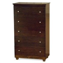 Atlantic Furniture - Chests - 74504 - The Miami 5 drawer chest was made for you. It is the perfect addition to your contemporary room and the brushed nickel knobs add to the modern feel. With five deep drawers, you'll get all the storage you need out of this piece. Metal drawer glides make it open and shut smoothly. Assembled from Eco-friendly Hardwood and completed in Antique Walnut finish, this piece will complete your modern look.Chest has Eco friendly solid hardwood constructionAntique Walnut finishFive drawersMetal drawer glidesEnglish dove tail joinery on all drawersBrushed Nickel HardwareSpecifications:Overall Dimensions: 55 H x 32.25 W x 17.25 DActual Weight: 125 lbsShipped fully assembled