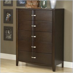 Modus Furniture - Chests - 1U2684 - The Perimeter Chest is constructed of Tropical Mahogany solid wood with Cherry wood veneers in a warm chocolate brown finish. It Features five large drawers for all your storage needs. The top drawers are felt lined to protect your valuables. With ample storage capacity and a practical design, the Perimeter Chest offers a lasting appeal you will enjoy for many years. The Perimeter Collection by Modus is a group of bedroom furniture offering subtle design elements with a touch of luxury for any urban contemporary home. It Features flowing lines and premium lumbers, full extension and ball bearing drawer glides, sanded and stained solid wood drawer boxes with dovetail joinery, and metal bed rail brackets. With superior construction and build quality the Modus Perimeter Collection is built to last and is sure to garner praise from all who see it. Chest has Tropical Mahogany solid wood construction with Cherry wood veneerConstructed with sustainably harvested premium lumbers a nd eco-friendly glues and resinsChocolate Brown finishFive spacious storage drawersFull extension ball bearing drawer glides for maximum capacity and ease of useSanded & stained solid wood drawer boxes with English dovetail (rear) and French dovetail (front) joinery for a consistent look and lasting qualityDust proof case construction keeps your floor cleanElegantly shaped convex faces create a sophisticated lookFelt lined top drawer for storing valuablesDrawer boxes and wood frames are corner blocked to ensure rigidity and lasting qualityContemporary styleShips fully assembledManufacturer limited 1-year warranty Specifications: Overall Dimensions: 51 H x 38 W x 19 DWeight: 160 lbsShipping Carton Dimensions: 56 H x 42 W x 24 D