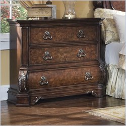 Pulaski - Chests - 962123 - The new European inspired Pulaski Wellington Collection immerses itself in old world elegance and grandeur that will add style and glamour to any home. Foliated overlays, bombe shaped bottoms and high arched beds add magnificence to this collection.Made of select solids and White Ash burl with Birch veneersDark Rich Cherry finish with Gold highlightsFancy-face veneer topThree individually framed drawersFelt bottom in top drawerDust proofing between drawersWooden drawer guidesAntique brass finished hardwareTraditional European styleSpecifications:Overall Dimensions: 41 H x 46 W x 21 DWeight: 110 lbs