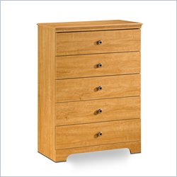 South Shore - Chests - 3575035 - South Shore Brinley Collection Kids 5 drawer chest in Florence Maple Finish Clean, durable and sturdy in design. The Brinley 5 drawer chest is the right addition to any child's room. This spacious five-drawer chest will enhance any bedroom. Able to fit in to many different types of decor, it can grow both with your child and their personal style, making it the perfect choice for your family home. Florence maple finish Constructed of CARB compliant materials Metal knobs in a stainless steel finish with black inserts Profiled corners and moulding for increased security Decorative moulding and decorative kickplate Some assembly required Specifications: Overall dimensions: 44.1 H x 16.8 W x 31.5 D Weight: 84 lbs