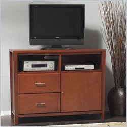 Modus Furniture - TV Stands - NV9989 - Deceptively simple in design, the Nevis Media Chest is practical and functional. Designed for contemporary living spaces, it has clean lines, stylish brushed chrome accents, stylish brushed chrome accents, gently tapered solid wood posts and recessed side panels to create an urban chic appeal. It Features a slotted back panel for cord management and can accommodate TVs up to 55 inches. Crafted from Tropical Mahogany solids and a variety of beautiful veneers, the Nevis Collection Features solid wood drawer boxes with English dovetail joints on both front and back, full extension ball bearing drawer glides, and corner blocked frames to ensure rigidity, making them as functional as they are sleek. The wide variety of pieces are enhanced by an elaborate American finishing process in either a rich Spice or a deep, dark Espresso, both complimented by brushed chrome hardware. Together with a vast array of contemporary platform, low profile and sleigh bed styles, the Nevis Colle ction blends the sleek and exotic with the functional. Rich Spice finish Stylish contemporary design Accommodates TVs up to 55 inches 2 open compartments that feature slotted back panel for easy cord management 2 solid wood drawer boxes with English dovetail joinery To drawer includes dividers to better organize your media Brushed chrome bar drawer pulls contrast beautifully against the rich spice finish Full extension ball bearing drawer glides 1 door with a shelf behind it Constructed from Tropical Mahogany solid wood and Eastern Ash veneers Some assembly required Specifications: Dimensions: 40 H x 52 W x 19 D Weight: 176 lbs