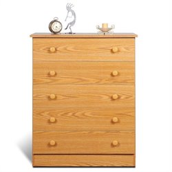 Prepac - Chests - OBD30385 - Simple in design, the Prepac Five Drawer chest is ideal for any bedroom. Classic round knob hardware completes the look. Its style and color makes it adaptable to any setting in your home where a little more storage space is needed. Chest Features particle board and MDF (medium density fiberboard) construction with laminate coating Chest has oak finish Chest Features five large drawers Sides, top, drawer fronts and kickers are made from 5/8 thick laminated particle board Drawers are composed of MDF Drawers slide smoothly on nylon glides with built in safety stops Easy lift out drawers for cleaning & moving Engineered for quick & easy home assembly 5 year manufacturer's limited warranty Specifications: Overall dimensions: 38 H x 30 W x 16 D