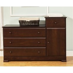 Da Vinci - Chests - M5599Q - This combo dresser is engineered for usability. It?s got all the style you could want and all the space you could need. Part of the Kalani collection it is designed with clean, simple, but elegant lines so it blends well with many other styles. This combo dresser will become a family favorite and is destined to become an heirloom. Like getting two pieces of furniture in one it combines two storage pieces, a dresser and shelved unit which will service the needs of a baby and young child but be just as appropriate for a teenager.This piece of nursery furniture Features 3 long drawers which are perfect for storing clothing and another storage area with shelves behind a door--the perfect place to hide the clutter. Combo dresser has 3 drawers on one side and a fixed shelf on the other side Drawers glide on metal hardware for easy access and has a stop mechanism that will lock that will not allow your little one to open it all the way Dresser top can fit most changer pads and can be us ed as changer as well We recommend the M5316, 34 contour pad, or M5319, 31 contour pad to use on this dresser Lead and phthalate safe Non-toxic finish Made of solid New Zealand Pine wood from sustainable forests and engineered wood products 1 year warranty Specifications: Product Dimensions: 38H x 17W x 54D Assembled Weight: 101 lbs.