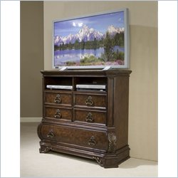 Pulaski - Chests - 962145 - The new European inspired Pulaski Wellington Collection immerses itself in old world elegance and grandeur that will add style and glamour to any home. Foliated overlays, bombe shaped bottoms and high arched beds add magnificence to this collection.Made of select solids and White Ash burl with Birch veneersDark Rich Cherry finish with Gold highlightsFancy-face veneer topTwo open compartmentsFive individually framed drawersWooden drawer guidesAntique brass finished hardwareTraditional European styleSpecifications:Overall Dimensions: 44 H x 48 W x 21 DWeight: 148 lbs
