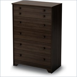 South Shore - Chests - 2779035 - This shaker-style chest Features five spacious drawers. The upper drawer front is decorated with a horizontal groove giving the impression of two smaller drawers. The simple appeal of this piece is accentuated by its round handles in a Moka finish. Also available in Natural Maple (2713035) finish.5 practical drawersIllusion of multiple drawers due to the grooves on the top drawer faceShaker styleTransitional styleDecorative kickplateSecure Smart Glides drawer slides with lifetime warranty Available in Moka finishManufactured from laminated particle board and are made of EPP certified panels Ready to assemble5 year limited warrantySpecifications:Dimensions: 48inH x 30inW x 17inDWeight: 78lbsDrawer interior dimensions : W21.5 x front to back 14.25芒鈧淭his item's packaging is ISTA 3A-certified to ensure its integrity and your total satisfaction